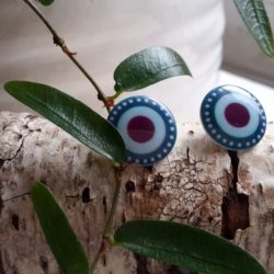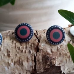 Bouton – Brillant, centre bleu, 2 couronnes dont 1 à pois
