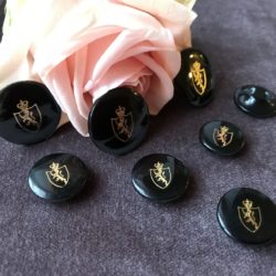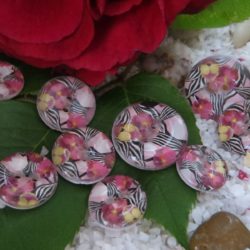 Bouton – Fleurs et feuilles zébrées sur rose clair