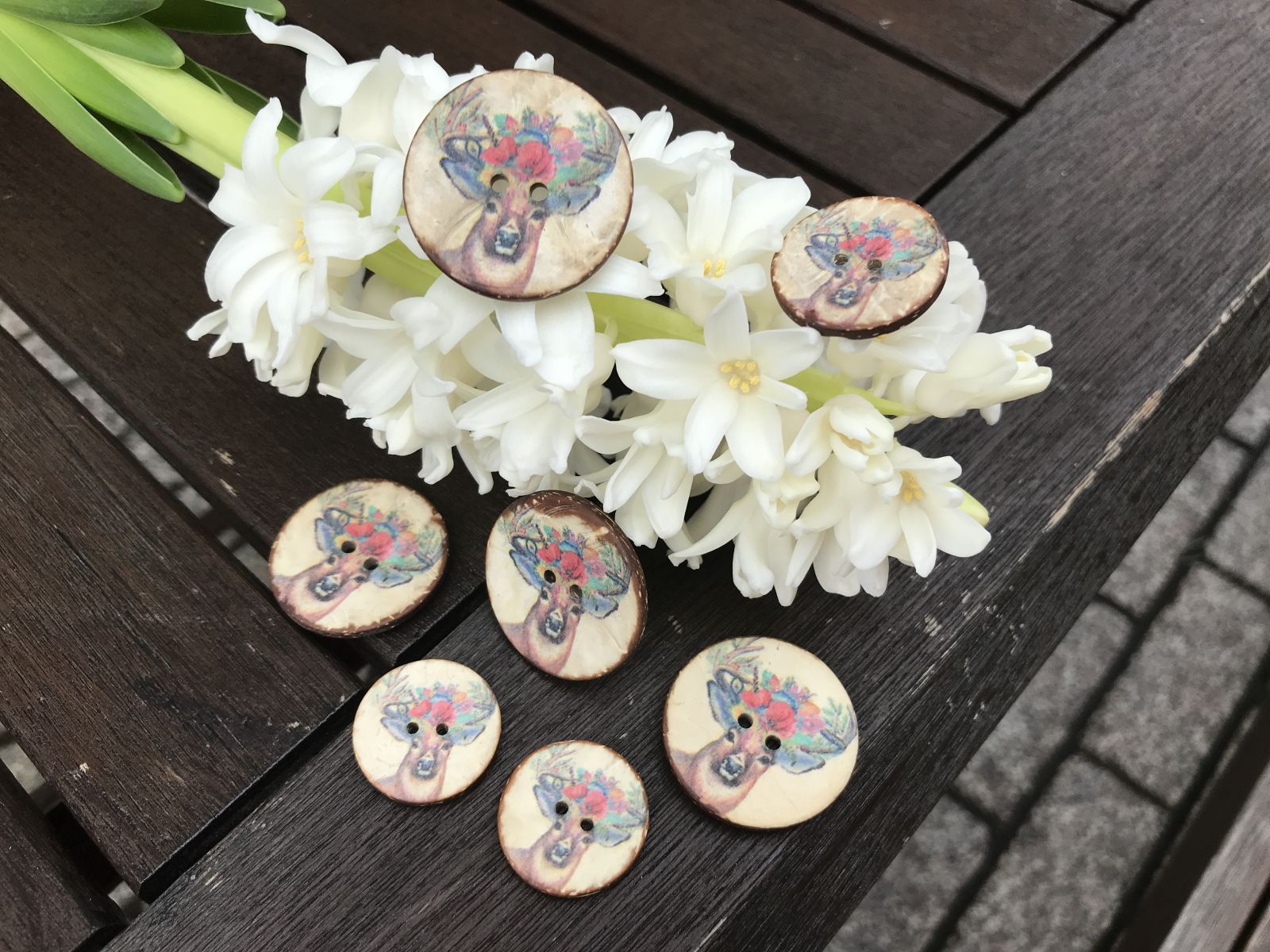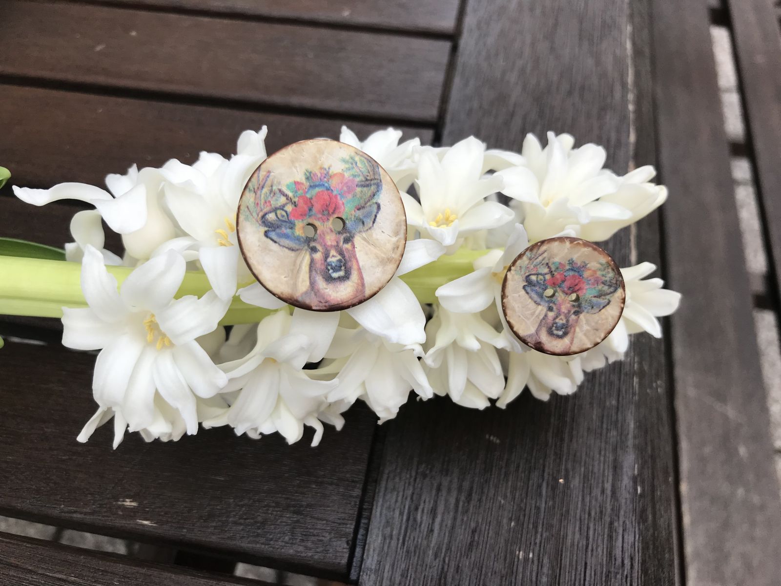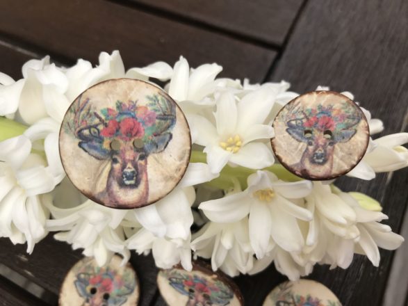 Accueil / Boutons / Bois Boutons – Tête de cerf garnie Accueil / Boutons / Bois / Boutons – Tête de cerf garnie Boutons – Tête de cerf garnie2.20€ – 3.45€Plage de prix : 2.20€ à 3.45€ Dimension Choisir une optionØ23mmØ30mmEffacer - quantité de Boutons - Tête de cerf garnie + Ajouter au panier Informations complémentaires Informations complémentaires Dimension Ø23mm, Ø30mm Bouton en noix de coco à 2 trous Ø23 et 30mm à 2.20 et 3.45€ pièce. Lavage à la main et non repassable. UGS : 453031_UK23 Catégorie : Bois Étiquettes : cerf, coco Produits similaires Bouton – C’est le pied. 0.40€ Ajouter au panier *Boutons – Bois peints 1.50€ – 1.65€Plage de prix : 1.50€ à 1.65€ Choix des options Ce produit a plusieurs variations. Les options peuvent être choisies sur la page du produit Boutons – Ronds et fleurs imprimés sur bois 1.65€ Ajouter au panier Bouton – Noix de coco en beige 1.70€ – 2.70€Plage de prix : 1.70€ à 2.70€ Choix des options Ce produit a plusieurs variations. Les options peuvent être choisies sur la page du produit