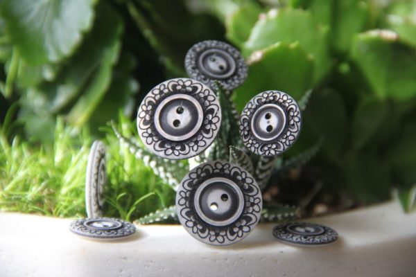 2 tailles : Ø18mm à 1,20€ pièce Ø23mm à 1,95€ pièce les motifs sont noirs