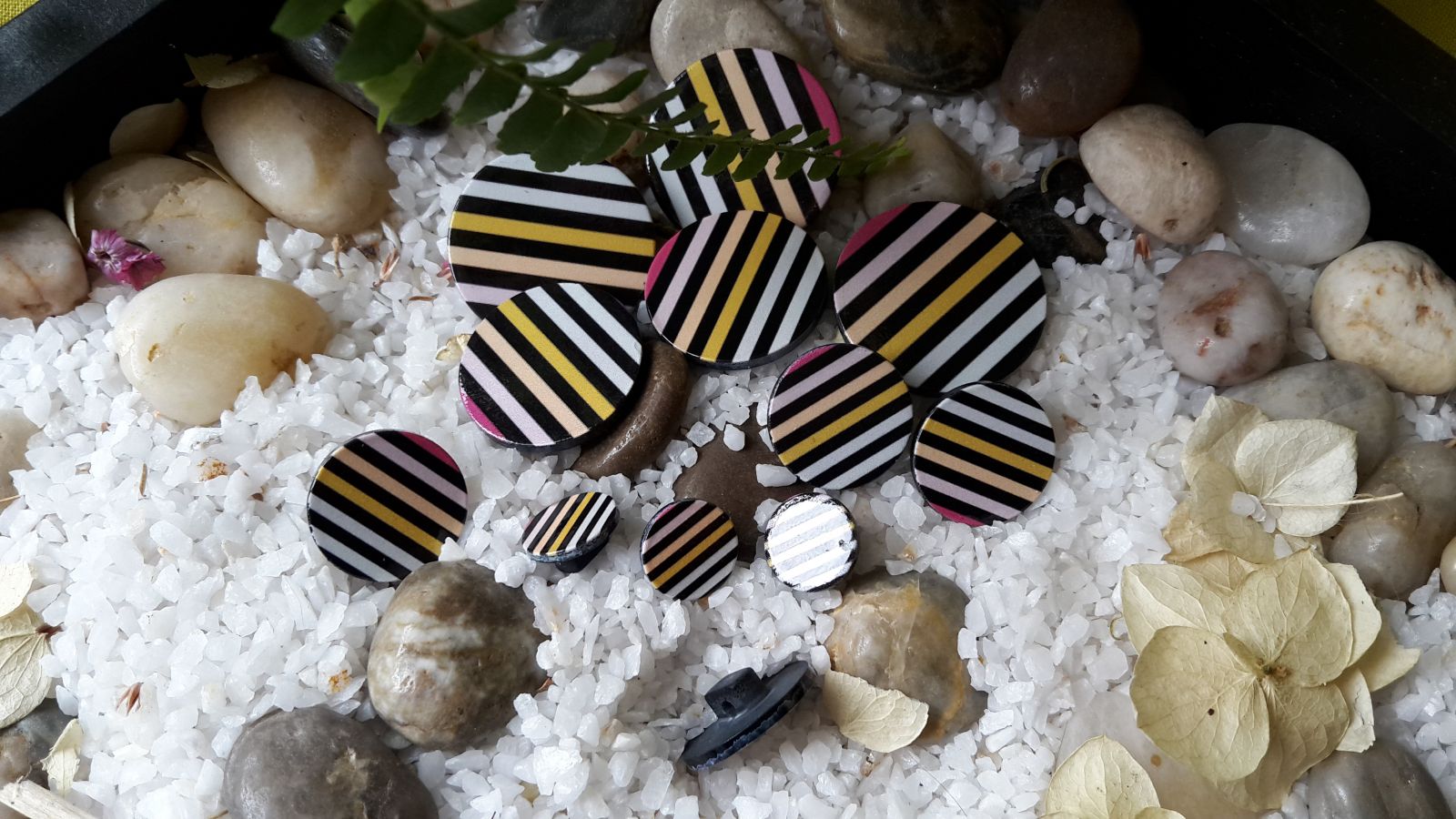 Accueil / Boutons / Fantaisies-Modes Bouton – Plat, rayures noires et couleurs Accueil / Boutons / Fantaisies-Modes / Bouton – Plat, rayures noires et couleurs Bouton – Plat, rayures noires et couleurs2.50€ – 2.60€Plage de prix : 2.50€ à 2.60€ Dimension Choisir une optionØ10mmØ15mmEffacer - quantité de Bouton - Plat, rayures noires et couleurs + Ajouter au panier Informations complémentaires Informations complémentaires Dimension Ø10mm, Ø15mm Bouton rond en plastique diamètres 10 et 15mm à 2.50 et 2.60€ pièce.. Fixation par pied. UGS : 34095-23.99 Catégorie : Fantaisies-Modes Étiquette : plastique Produits similaires Boutons face voilée aspect limé 1.10€ – 2.75€Plage de prix : 1.10€ à 2.75€ Choix des options Ce produit a plusieurs variations. Les options peuvent être choisies sur la page du produit Bouton – Carré écru clair transparent avec bord blanc 2.41€ – 3.40€Plage de prix : 2.41€ à 3.40€ Choix des options Ce produit a plusieurs variations. Les options peuvent être choisies sur la page du produit Bouton – Fleur rouge et feuille verte sur tige 0.95€ – 1.95€Plage de prix : 0.95€ à 1.95€ Choix des options Ce produit a plusieurs variations. Les options peuvent être choisies sur la page du produit Boutons – Quadricolores : noir satiné majoritaire 0.95€ – 2.30€Plage de prix : 0.95€ à 2.30€ Choix des options Ce produit a plusieurs variations. Les options peuvent être choisies sur la page du produit