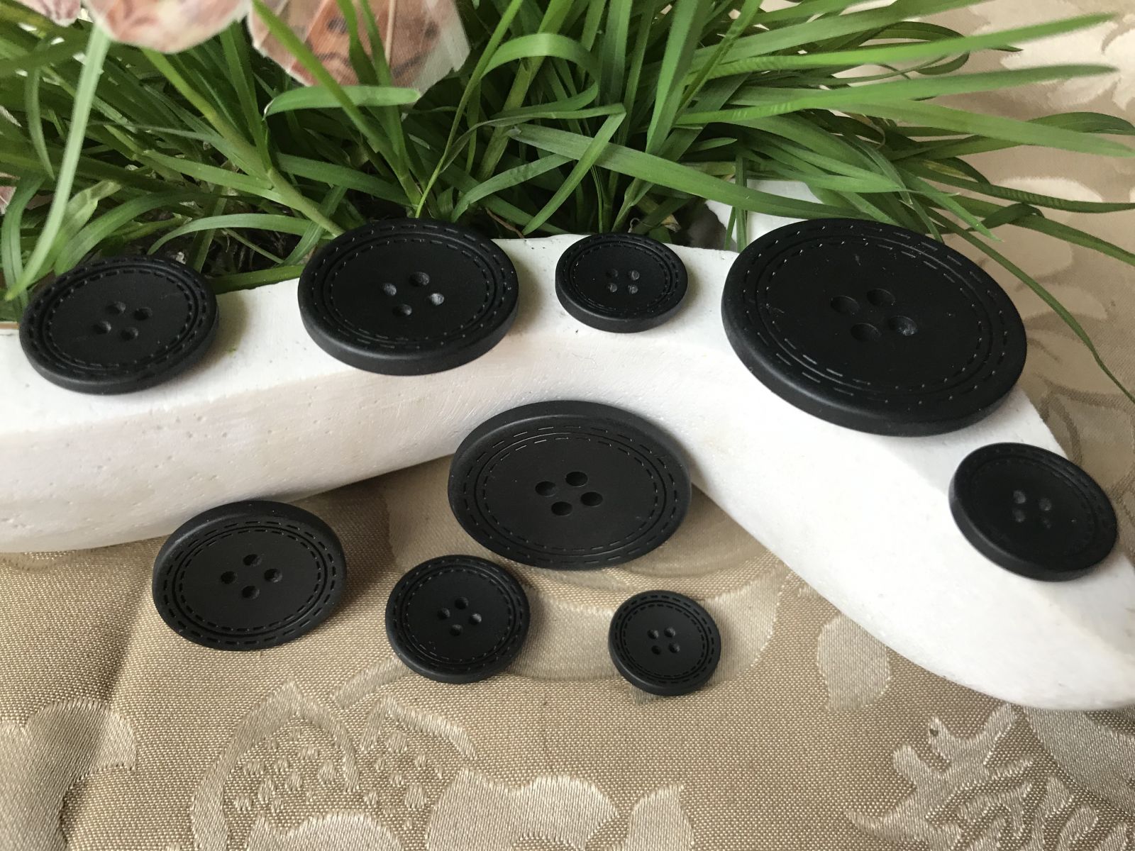 Accueil / Boutons / Fantaisies-Modes Bouton – Rond noir mat à 3 liserés Accueil / Boutons / Fantaisies-Modes / Bouton – Rond noir mat à 3 liserés Bouton – Rond noir mat à 3 liserés2.60€ – 4.80€Plage de prix : 2.60€ à 4.80€ Dimension Choisir une optionØ18mmØ23mmØ28mmØ38mmEffacer - quantité de Bouton - Rond noir mat à 3 liserés + Ajouter au panier Informations complémentaires Informations complémentaires Dimension Ø18mm, Ø23mm, Ø28mm, Ø38mm Bouton légèrement incurvé en plastique à 4 trous. Diamètre 18, 23, 28 et 38mm à 2.60, 3.00, 3.80 et 4.80€ pièce. UGS : B-BF133.BK Catégorie : Fantaisies-Modes Étiquette : plastique Produits similaires Boutons – Bleus marines 0.95€ – 2.30€Plage de prix : 0.95€ à 2.30€ Choix des options Ce produit a plusieurs variations. Les options peuvent être choisies sur la page du produit Bouton – Carré écru clair transparent avec bord blanc 2.41€ – 3.40€Plage de prix : 2.41€ à 3.40€ Choix des options Ce produit a plusieurs variations. Les options peuvent être choisies sur la page du produit Bouton – Rosace ajourée avec perle 6.40€ Ajouter au panier Bouton – Oeil diaphragme à 3 volets 3.30€ – 4.20€Plage de prix : 3.30€ à 4.20€ Choix des options Ce produit a plusieurs variations. Les options peuvent être choisies sur la page du produit