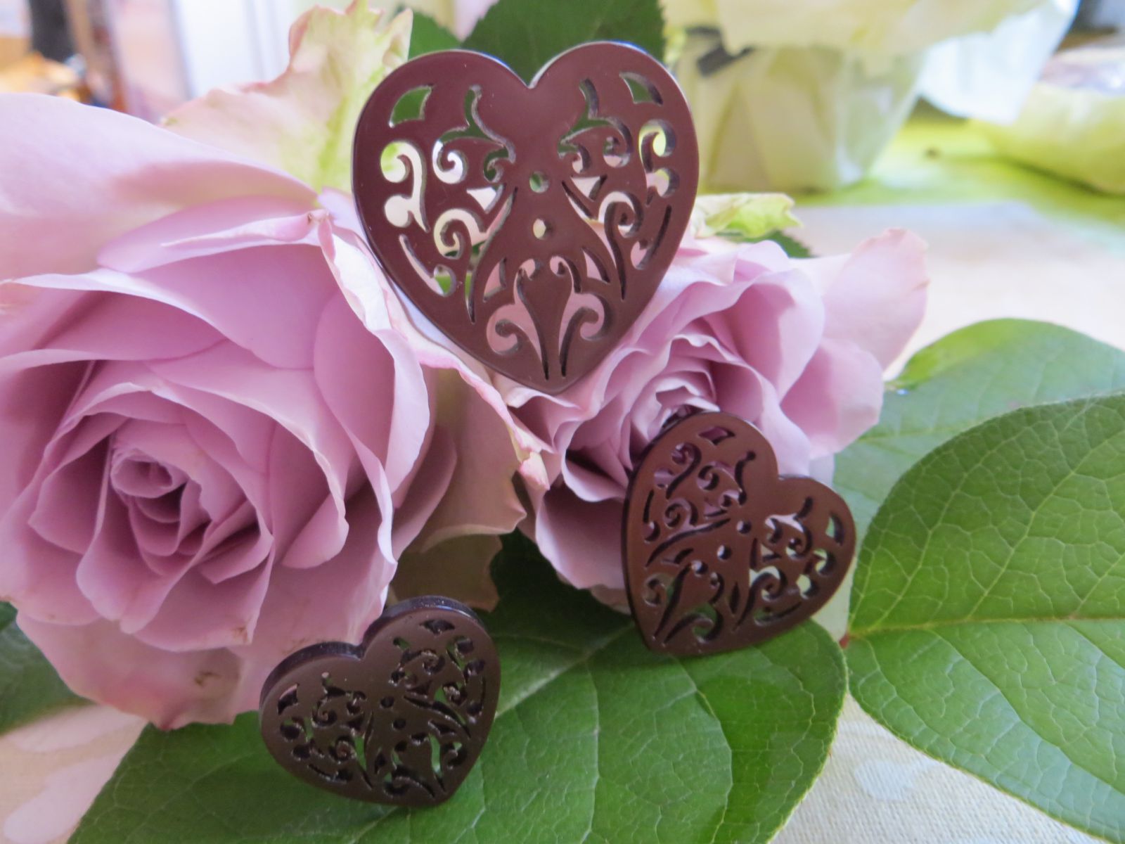 boutons coeurs à coudre 2 trous, tous découpés 3 tailles Ø22, Ø30, et Ø37mm à 2.10€, 3.00€ et 3.90€ pièce coloris marron clair le pendentif est assorti à 7.80€ pièce