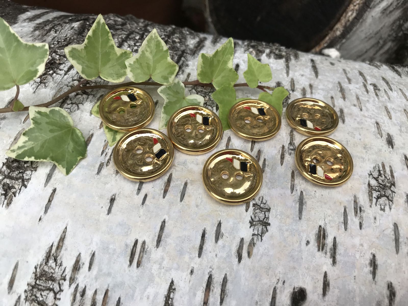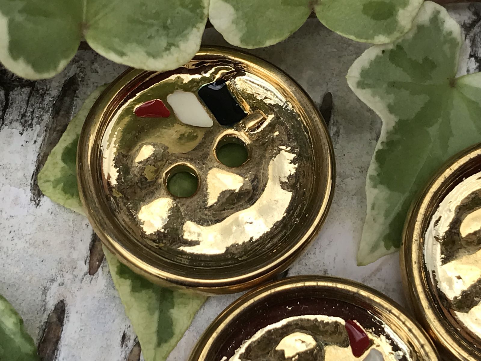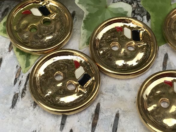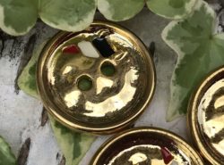 Bouton métal doré brillant, Ø25mm à 2 trous, poids 7 grammes à 2.80€ pièce.