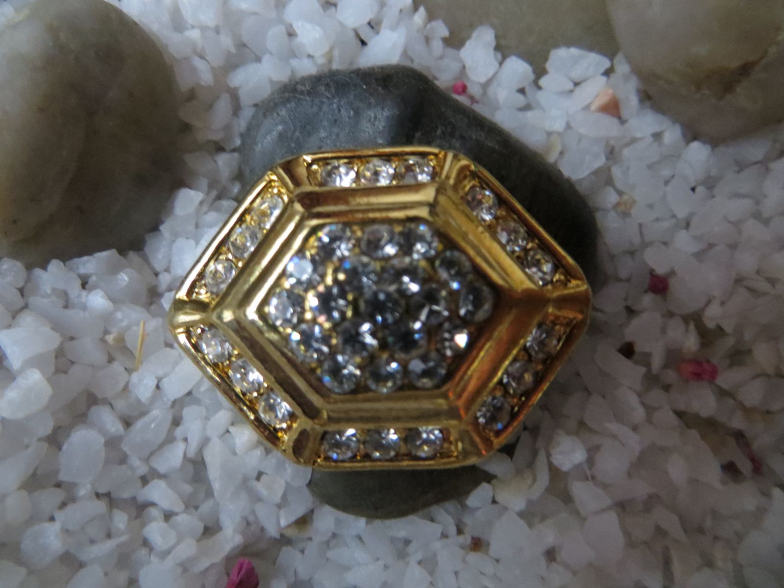 Bouton – Hexagonal doré; 37 strass dont 19 au centre