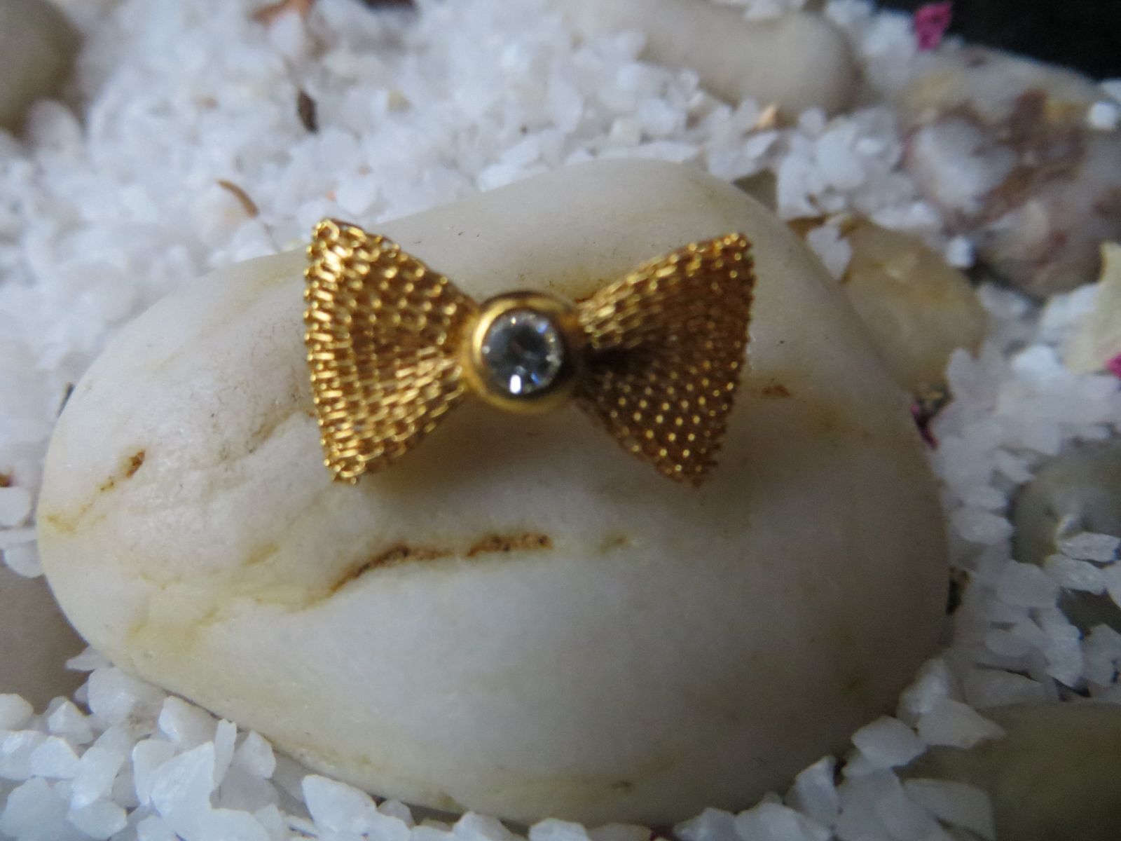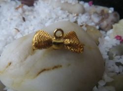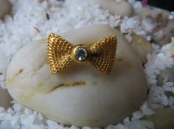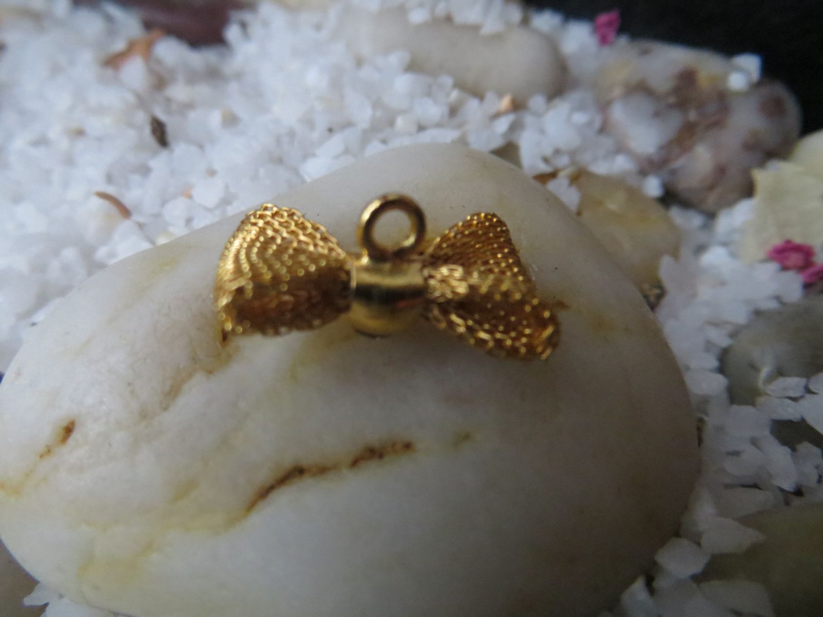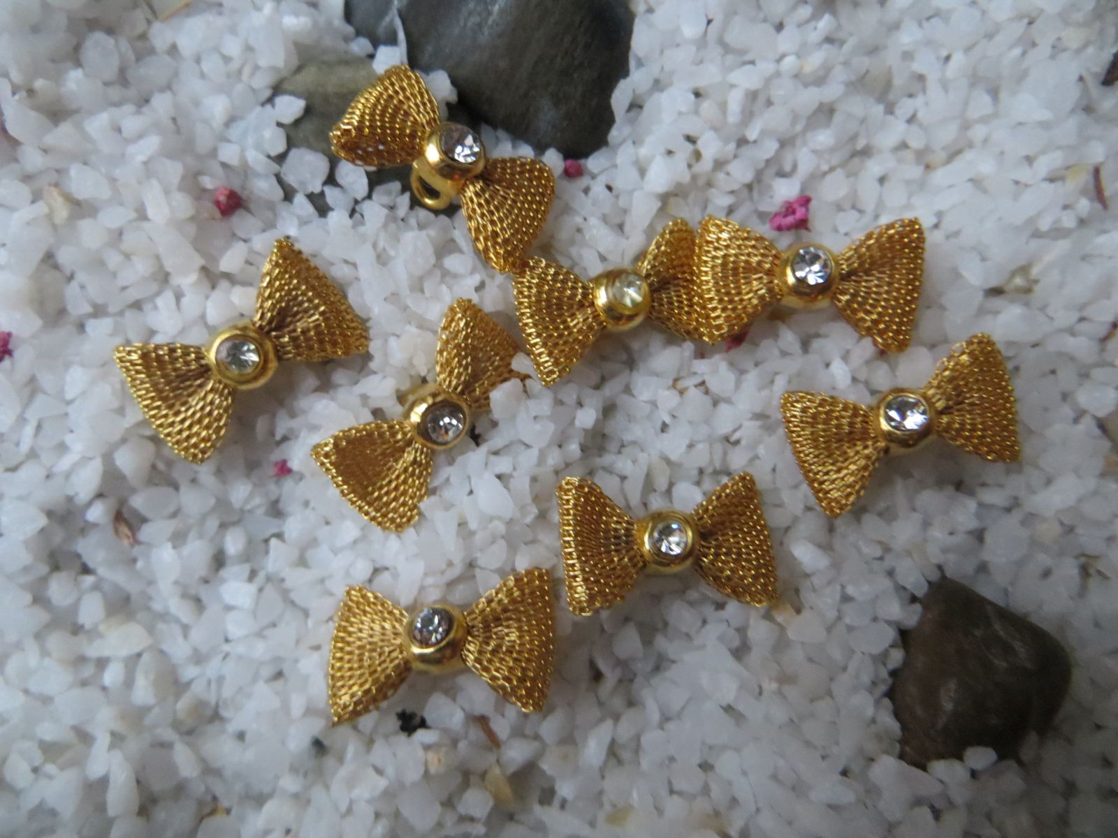 Ravissant bouton, strass collé sur métal doré. Longueur 17mm. Fixation par pied. Prix à l'unité.