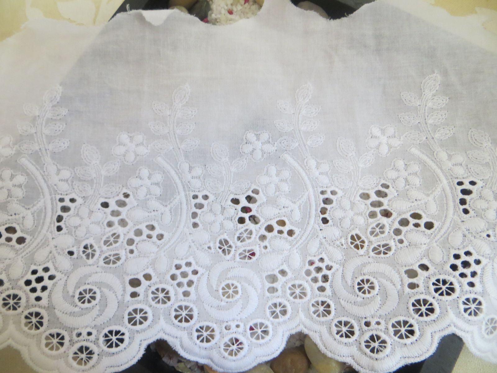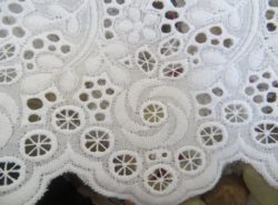 Accueil / Rubans, galons, tresses, cordons, biais...... / Dentelles - Broderie anglaise Broderie anglaise – Blanche largeur 14.5cm Accueil / Rubans, galons, tresses, cordons, biais...... / Dentelles - Broderie anglaise / Broderie anglaise – Blanche largeur 14.5cm Broderie anglaise – Blanche largeur 14.5cm8.90€ - quantité de Broderie anglaise - Blanche largeur 14.5cm + Ajouter au panier Grand motif brodé et ajouré hauteur 12cm. Prix du mètre UGS : S05301-001 Catégorie : Dentelles - Broderie anglaise Étiquette : fleurs Produits similaires Volant ruché en dentelle et mousseline 9.90€ Choix des options Ce produit a plusieurs variations. Les options peuvent être choisies sur la page du produit Dentelle – Noire festonnée sur tulle 0.56€ – 5.60€Plage de prix : 0.56€ à 5.60€ Choix des options Ce produit a plusieurs variations. Les options peuvent être choisies sur la page du produit Dentelle extensible large et blanche 9.95€ Ajouter au panier Dentelle – Entre-deux noir brodé sur tulle 3.50€ Ajouter au panier