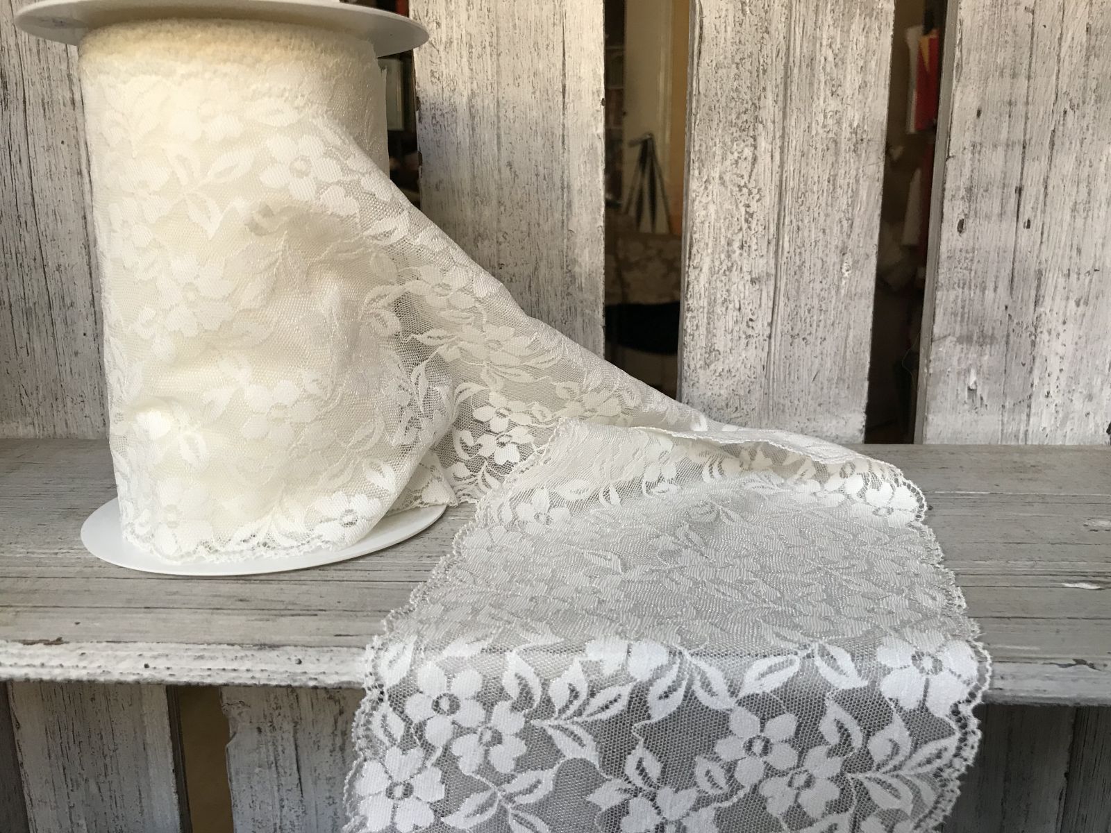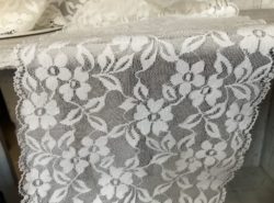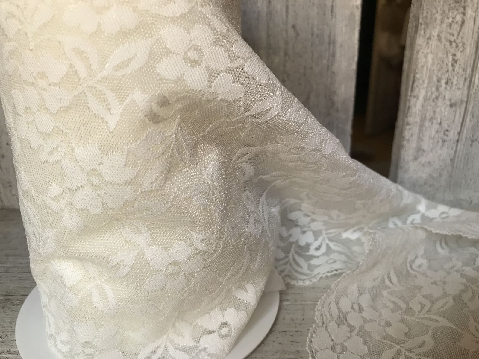 Entre-deux extensible largeur 175mm. 84% polyamide et 16% élastane. Lavage à la main, pas de séchage machine, repassage repère 1 point. Prix au mètre