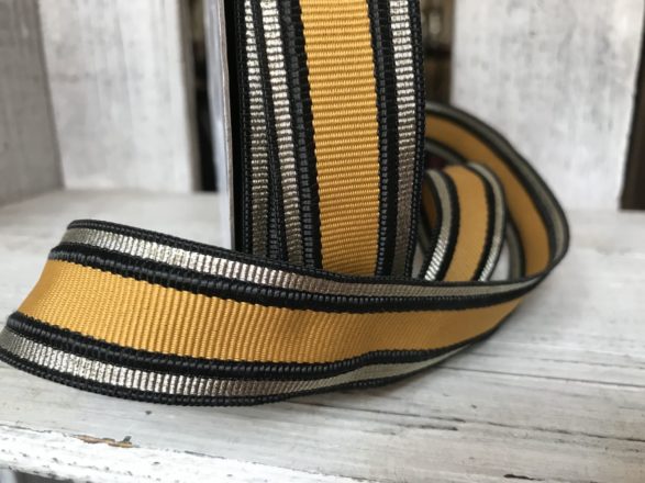 Accueil / Métrages / Galons Galon – Moutarde, 2 bandes dorées et 4 noires Accueil / Métrages / Galons / Galon – Moutarde, 2 bandes dorées et 4 noires Galon – Moutarde, 2 bandes dorées et 4 noires3.50€ - quantité de Galon - Moutarde, 2 bandes dorées et 4 noires + Ajouter au panier Très beau galon de fil moutarde au centre, métallisé or clair de chaque côté et 4 petites bandes noires en bourrelet. largeur 30mm. Prix au m. Deux autres modèles sont disponibles (voir photo) UGS : 7792.30-42 Catégorie : Galons Étiquettes : or, passementerie Produits similaires Galon noir 1.85€ Ajouter au panier Galon à clous ronds argents 1.19€ – 11.90€Plage de prix : 1.19€ à 11.90€ Choix des options Ce produit a plusieurs variations. Les options peuvent être choisies sur la page du produit Rococo – fleurs vert anis 4.60€ Choix des options Ce produit a plusieurs variations. Les options peuvent être choisies sur la page du produit Galon – Centimètres au mètre 1.08€ Choix des options Ce produit a plusieurs variations. Les options peuvent être choisies sur la page du produit